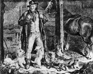 Dinmont and His Terriers" Gourlay Steele 1865 Shows two dogs that may be Dandies and two smaller ones that more closely resemble Cairns or Westies |
